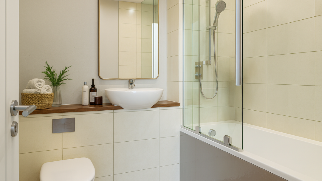 - Three piece bathroom with shower over bath